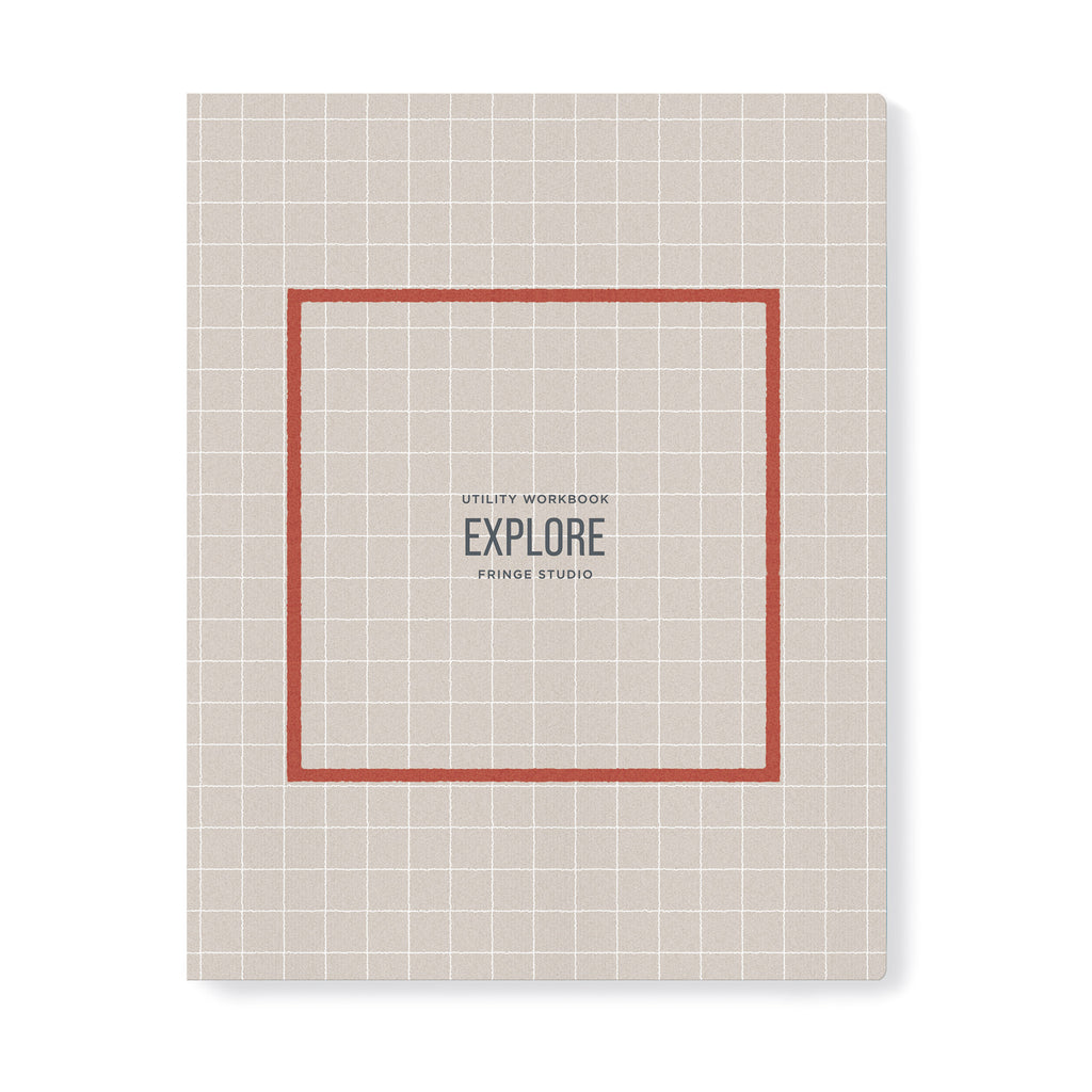 Creative paperback notebook featuring Fringe original artwork with metallic charcoal foil accent and light grey colored interior pages with 4 layouts: dots, grid, lined, and blank. Interior and back cover feature creative resource pages and conversion charts.