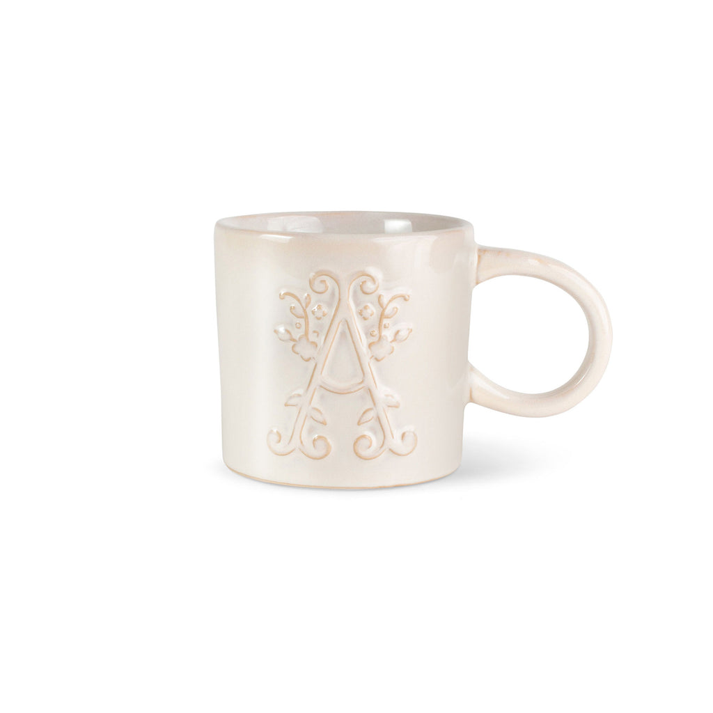 335008 PRA WHITE FLORAL A ARTISAN MONOGRAM MUG