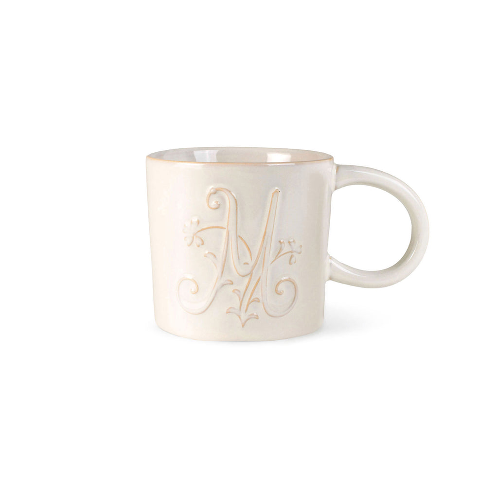 335015 PRA WHITE FLORAL M ARTISAN MONOGRAM MUG